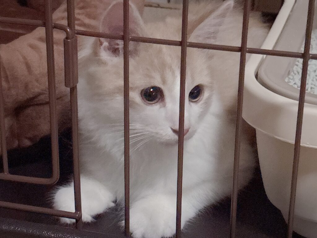 2025年10月18日、私は天使に恋をした。クリーム色のノルウェージャンフォレストキャットの男の子、ソルである。親の反対を押し切って、自分が世話でもなんでもするということでお迎えしたのだ。