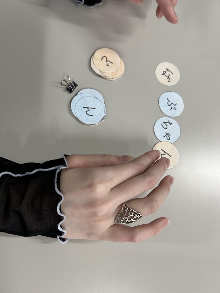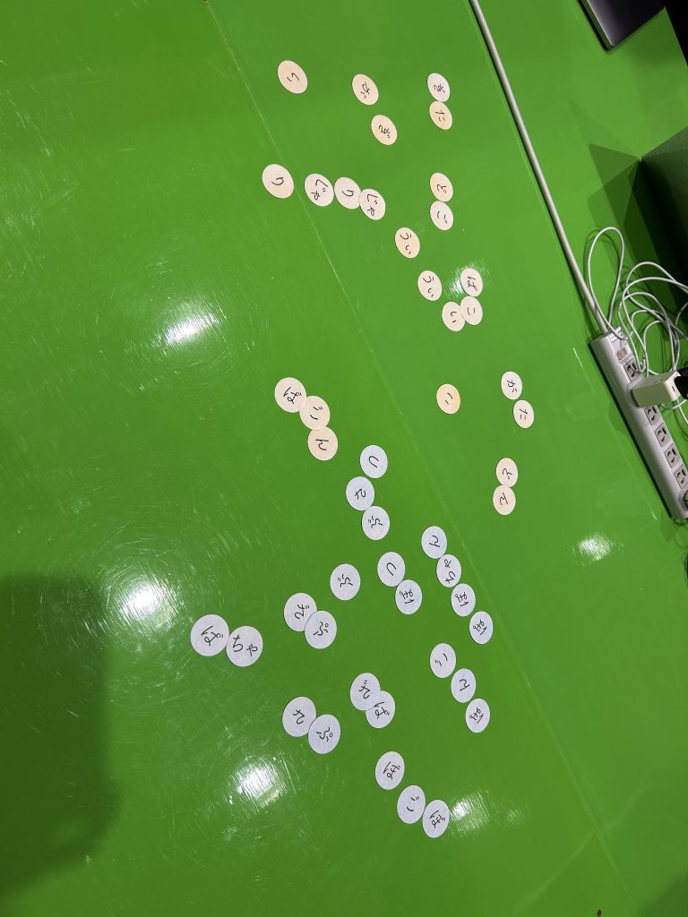 恣意的に組み合わせると、擬音語を作って楽しむというより単語を再現するような方向に意識が向いてしまう可能性があると考え、2Q最終ではランダムに文字を組み合わせる内容にした。